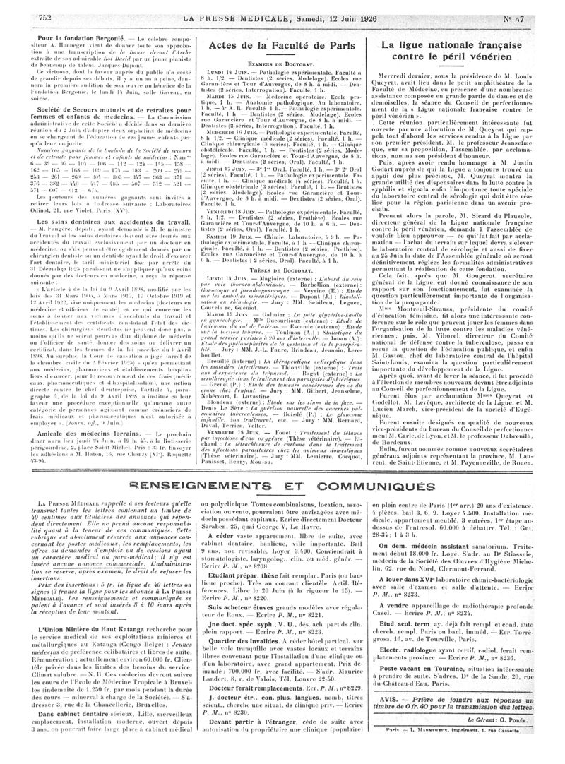 1926, Articles originaux. -