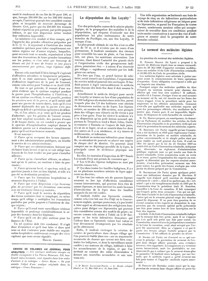 1926, Articles originaux. -