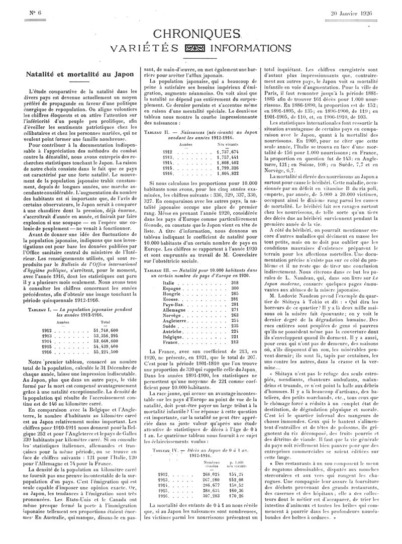 1926, Articles originaux. -