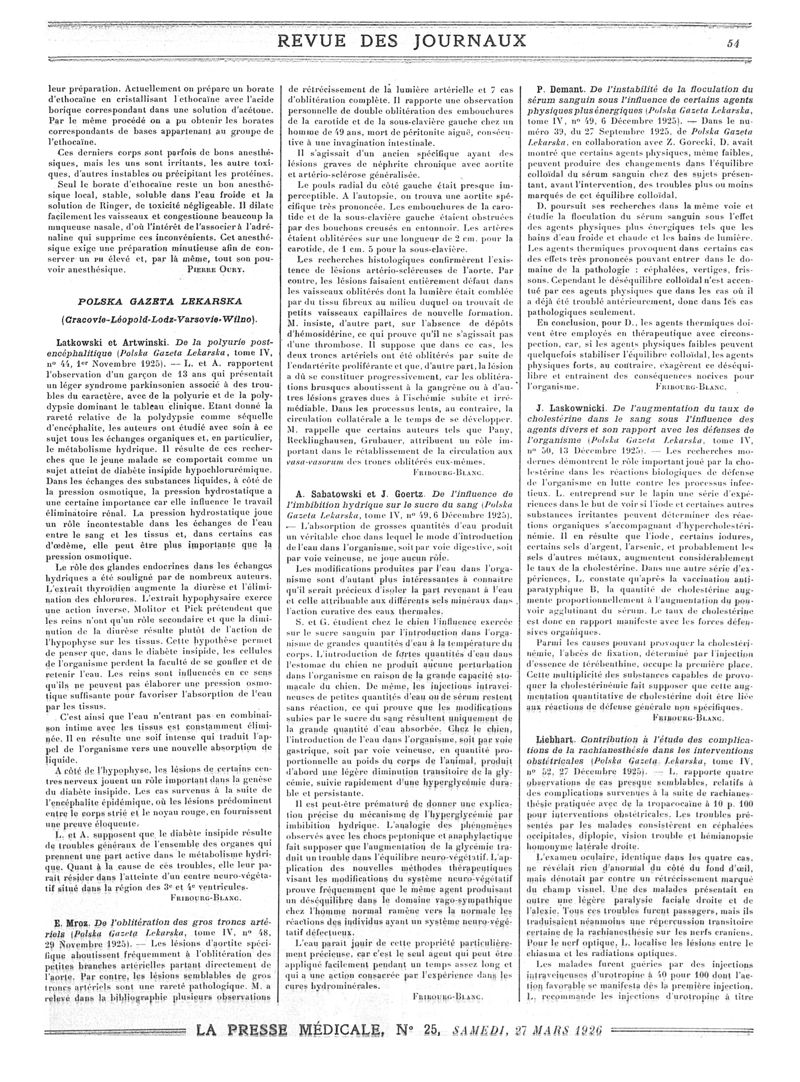 1926, Revue des journaux. -