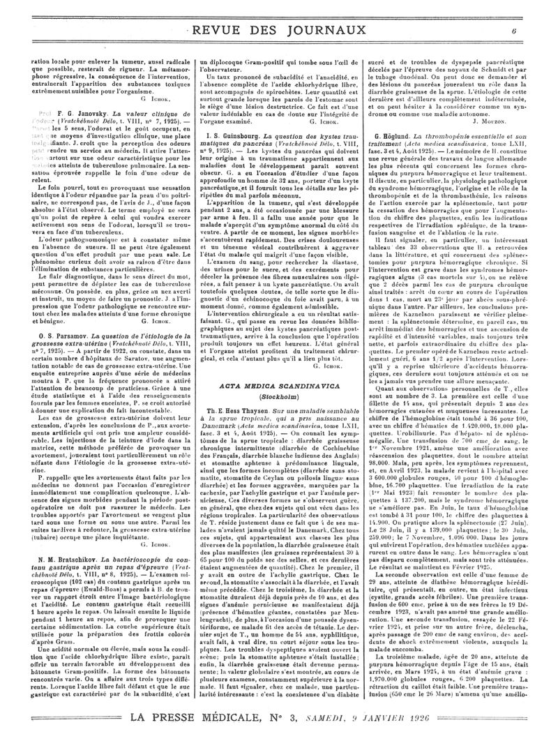 1926, Revue des journaux. -