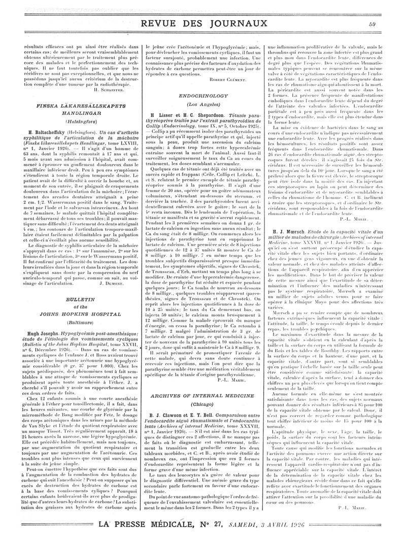 1926, Revue des journaux. -