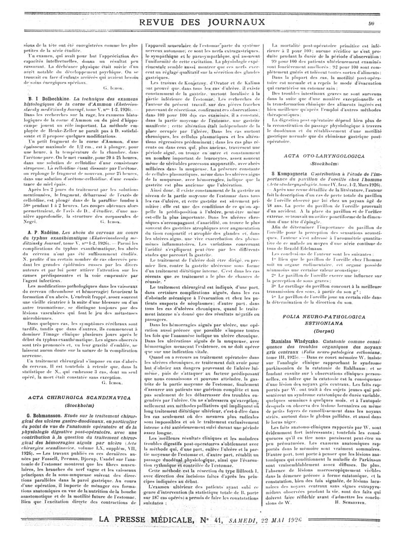 1926, Revue des journaux. -