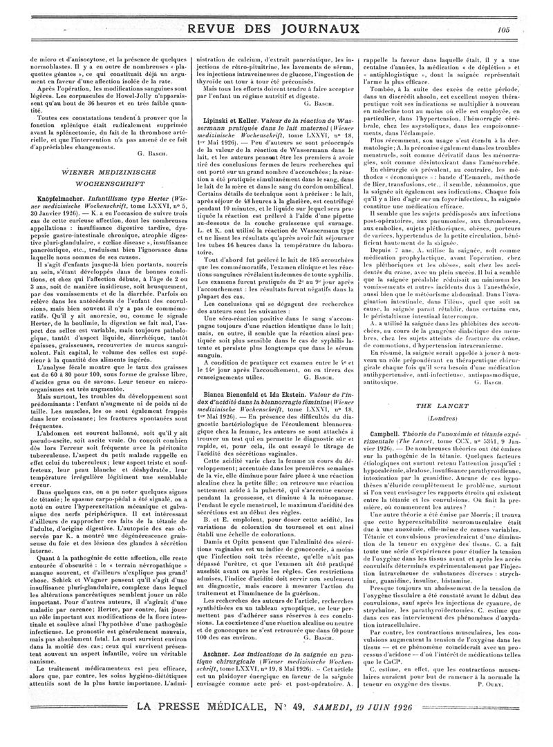 1926, Revue des journaux. -