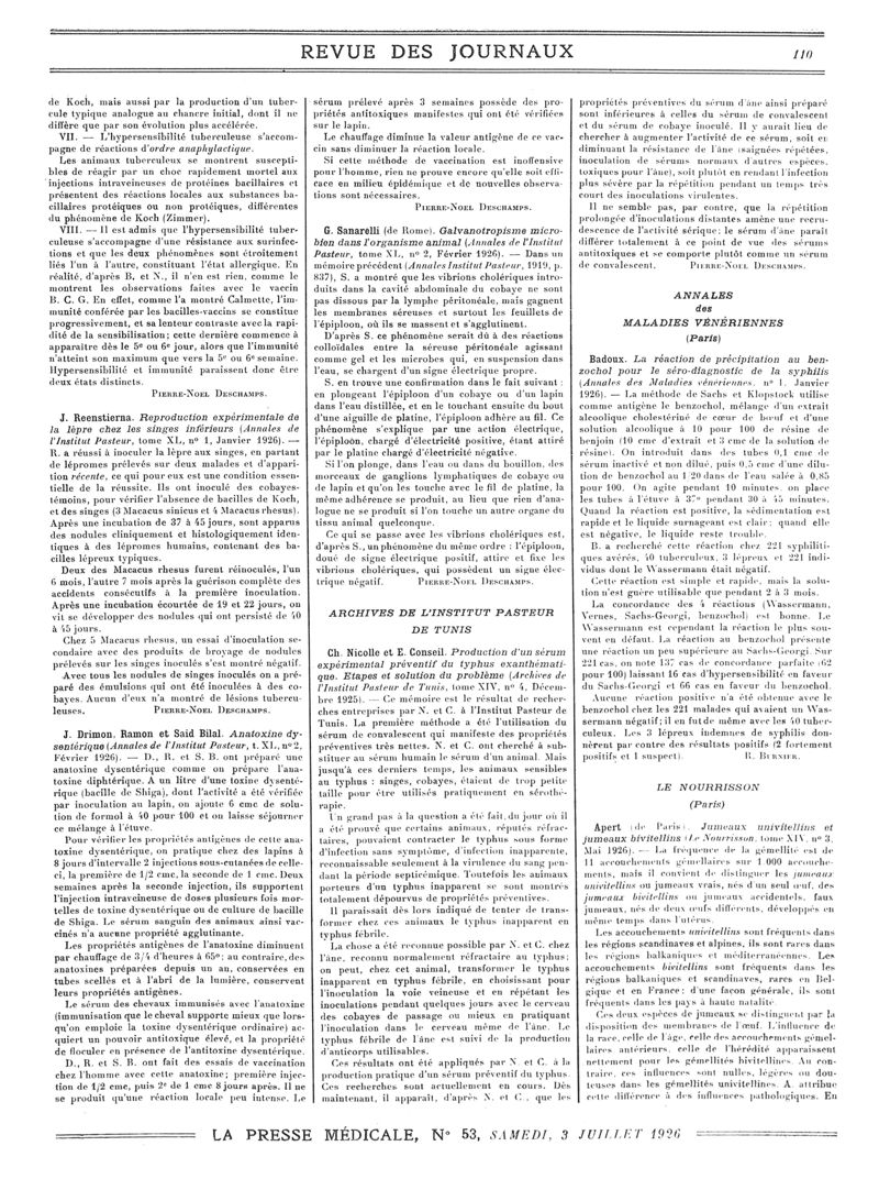 1926, Revue des journaux. -