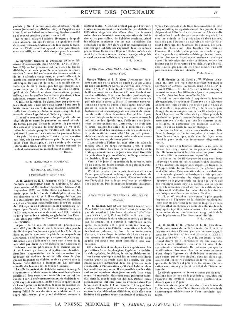 1926, Revue des journaux. -