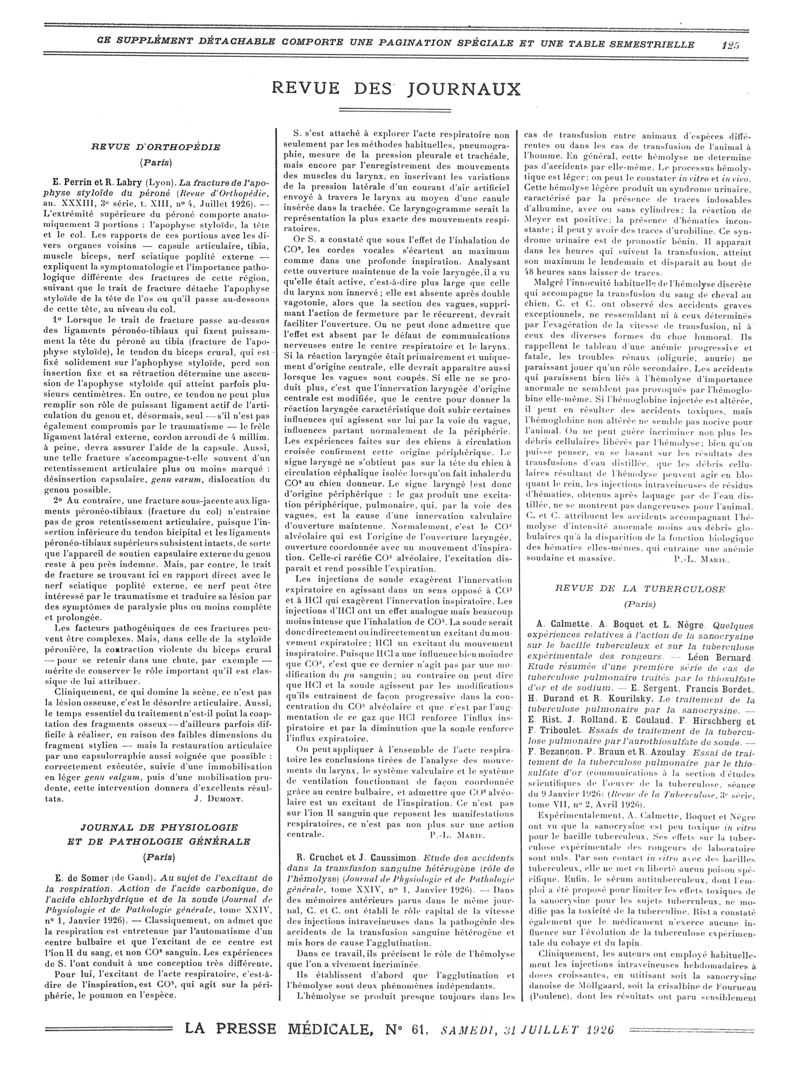 1926, Revue des journaux. -
