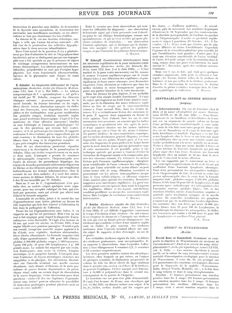 1926, Revue des journaux. -