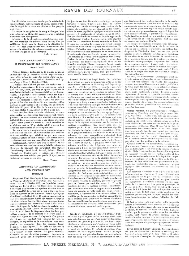 1926, Revue des journaux. -