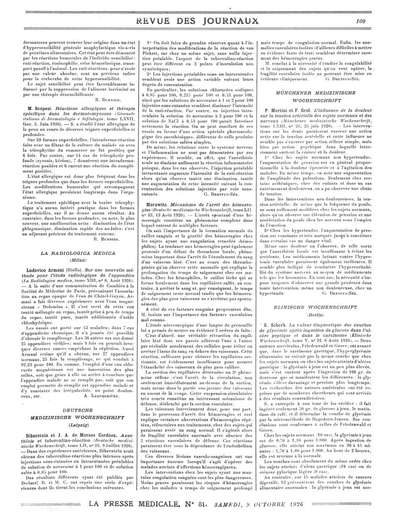 1926, Revue des journaux. -