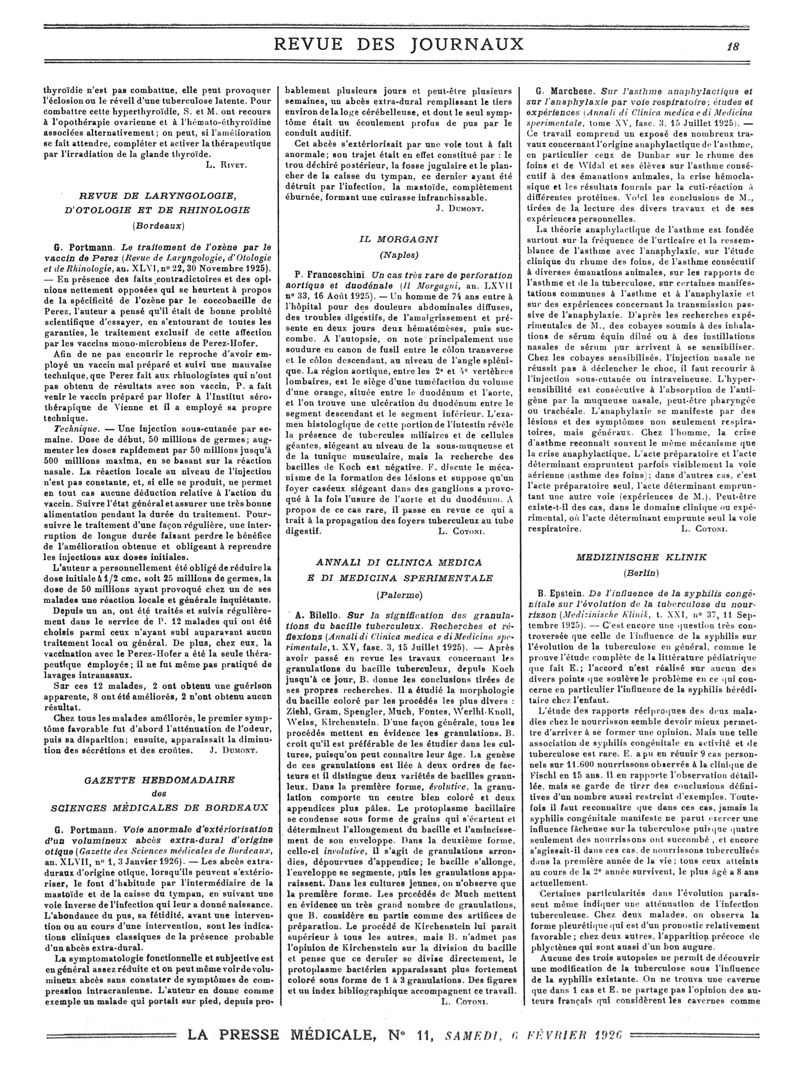 1926, Revue des journaux. -