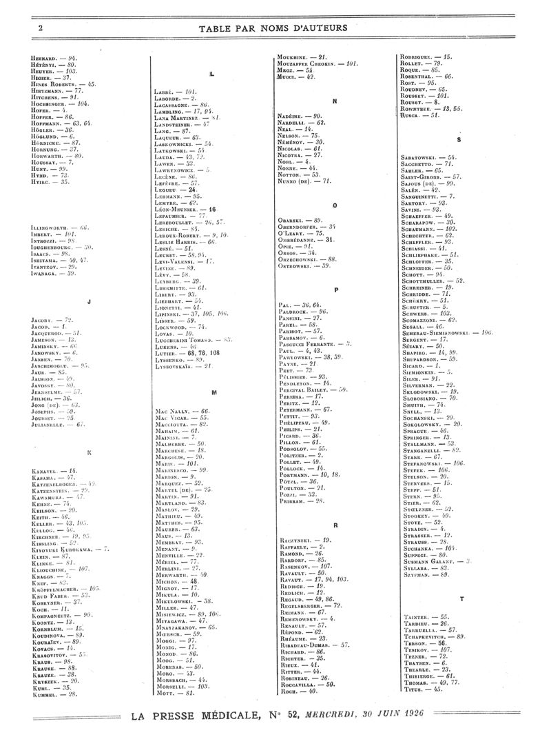 1926, Volume de tables. -