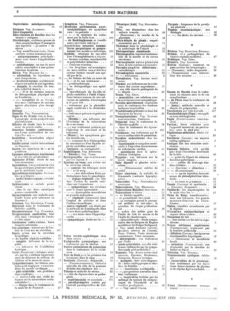 1926, Volume de tables. -