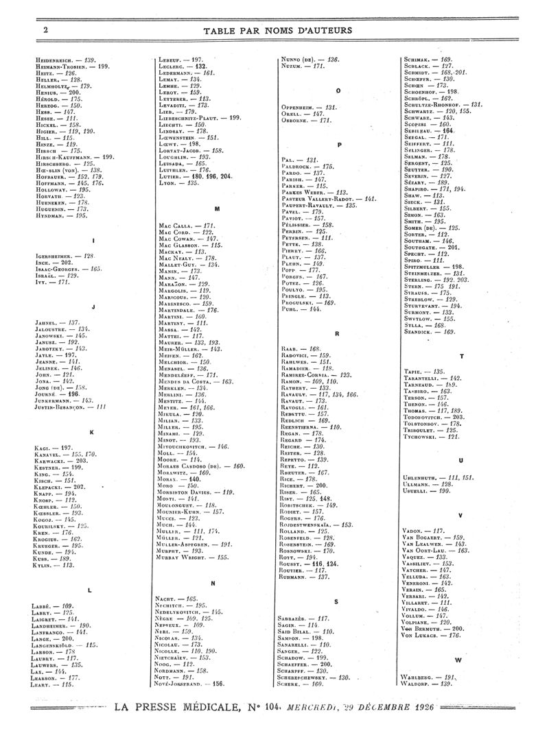 1926, Volume de tables. -