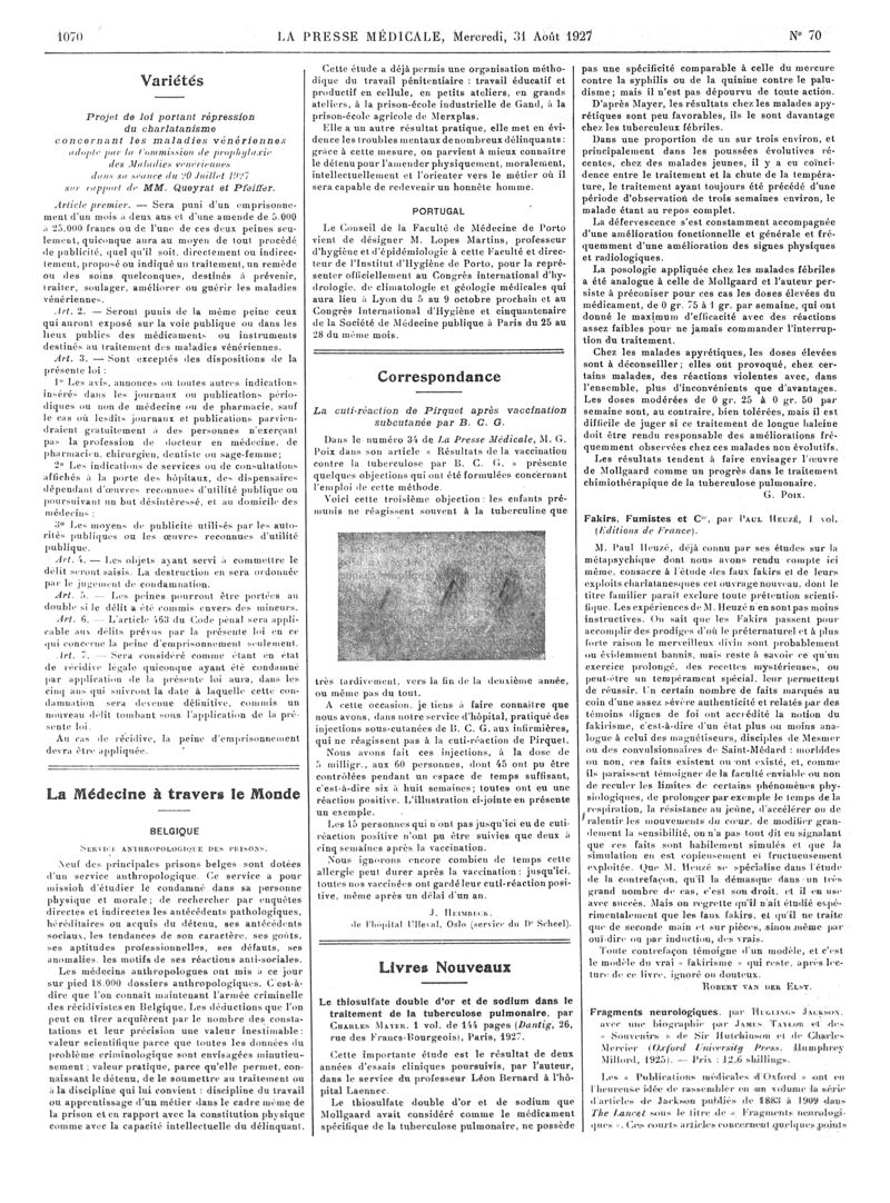 1927, Articles originaux. -