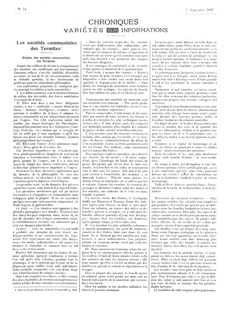 1927, Articles originaux. -