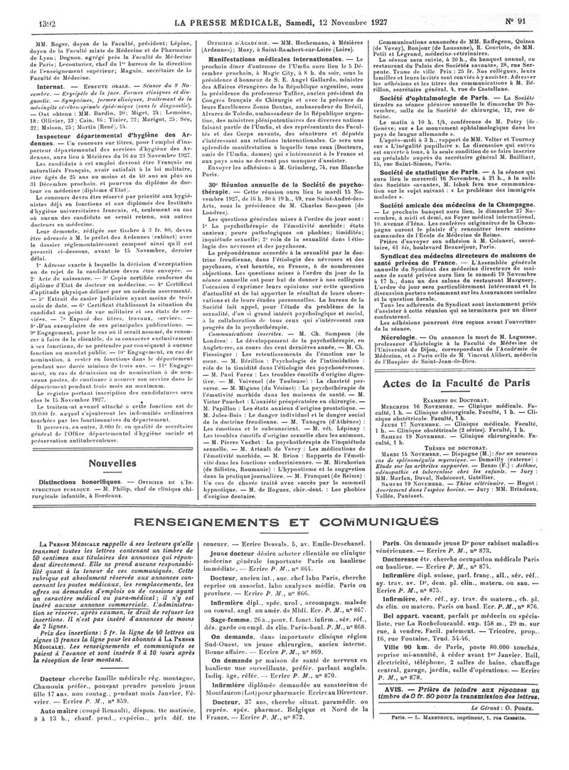 1927, Articles originaux. -