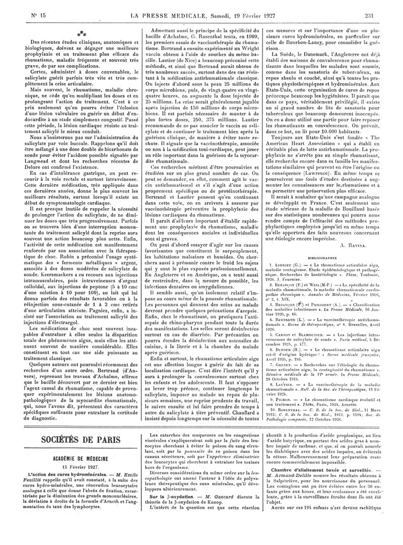1927, Articles originaux. -
