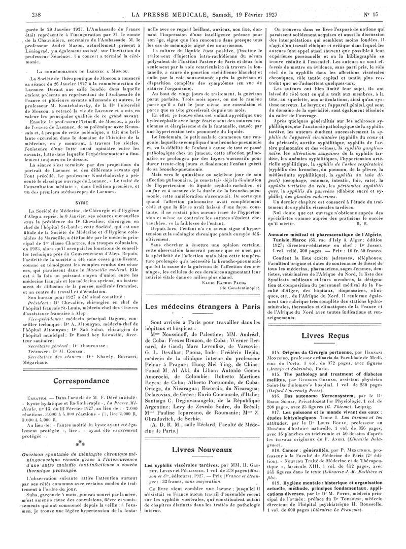 1927, Articles originaux. -