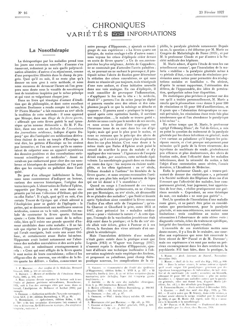 1927, Articles originaux. -