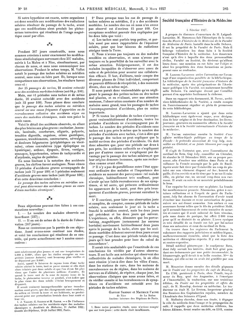 1927, Articles originaux. -