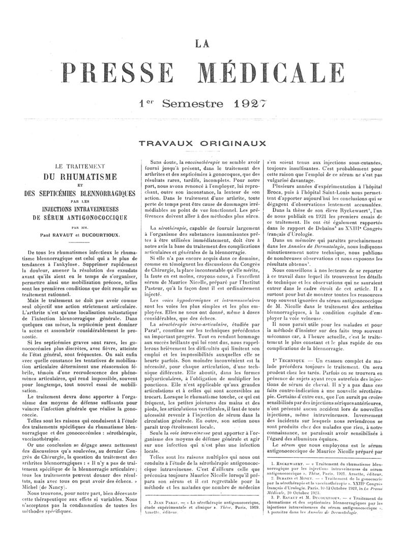 1927, Articles originaux. -
