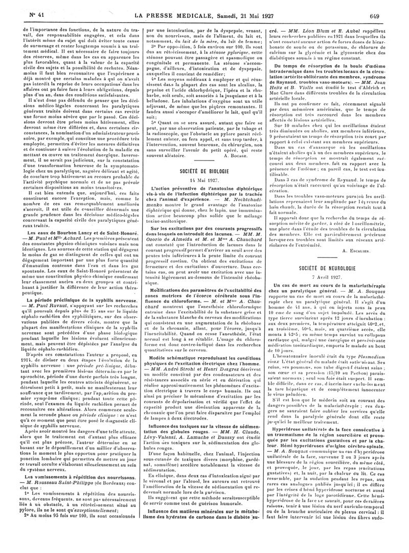 1927, Articles originaux. -