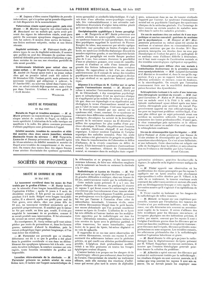 1927, Articles originaux. -