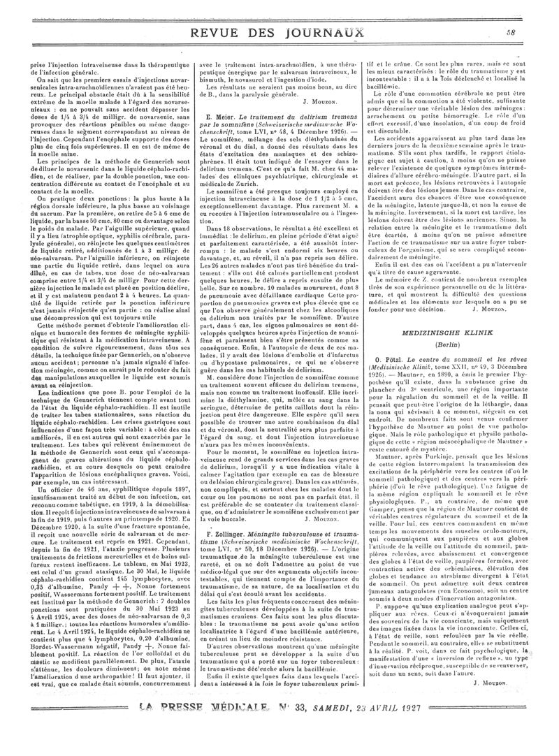 1927, Revue des journaux. -