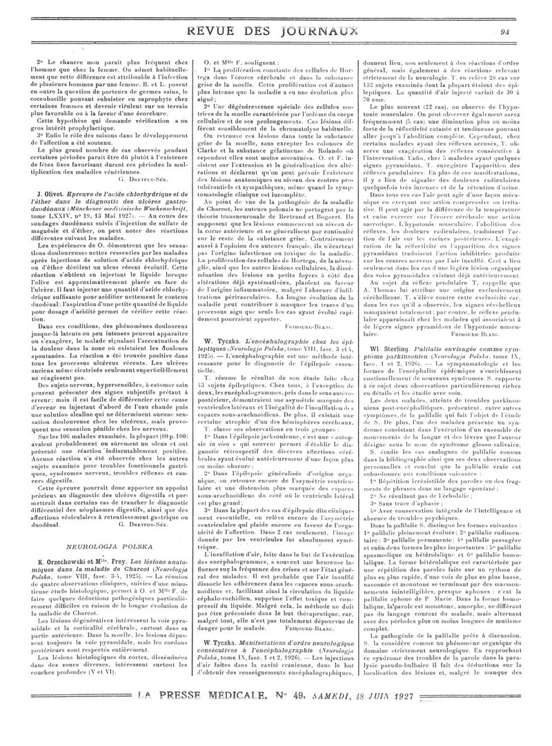1927, Revue des journaux. -