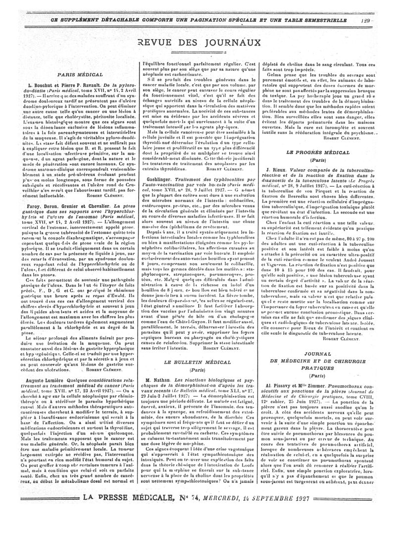 1927, Revue des journaux. -