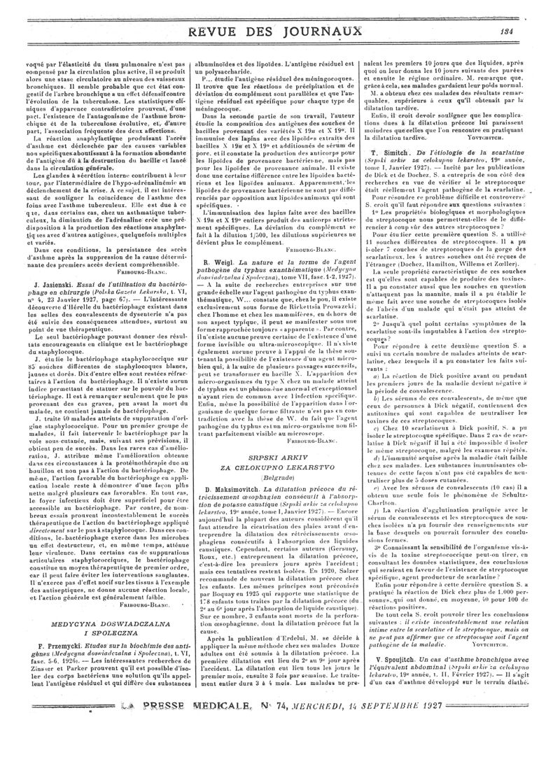 1927, Revue des journaux. -