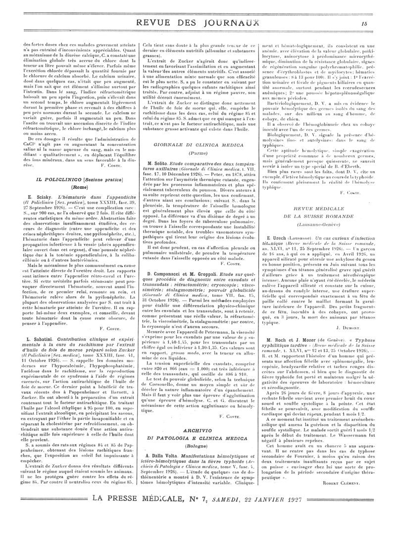 1927, Revue des journaux. -