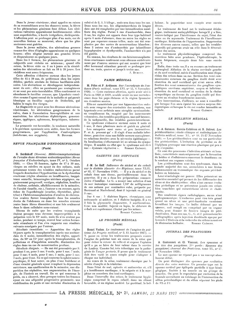 1927, Revue des journaux. -