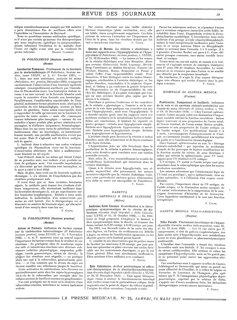1927, Revue des journaux. -