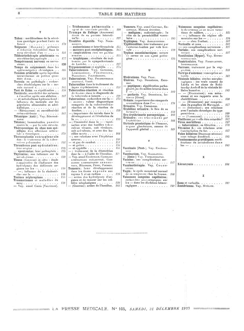 1927, Volume de tables. -