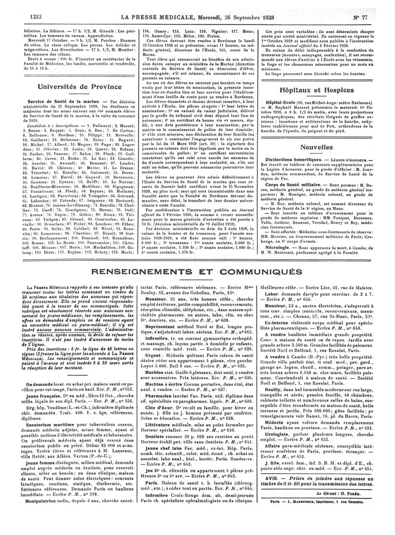 1928, Articles originaux. -