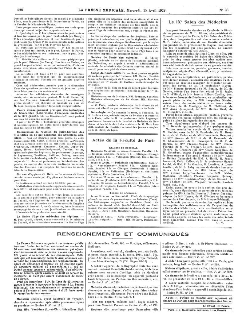 1928, Articles originaux. -