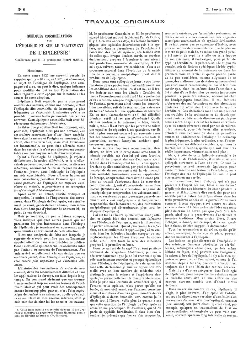 1928, Articles originaux. -