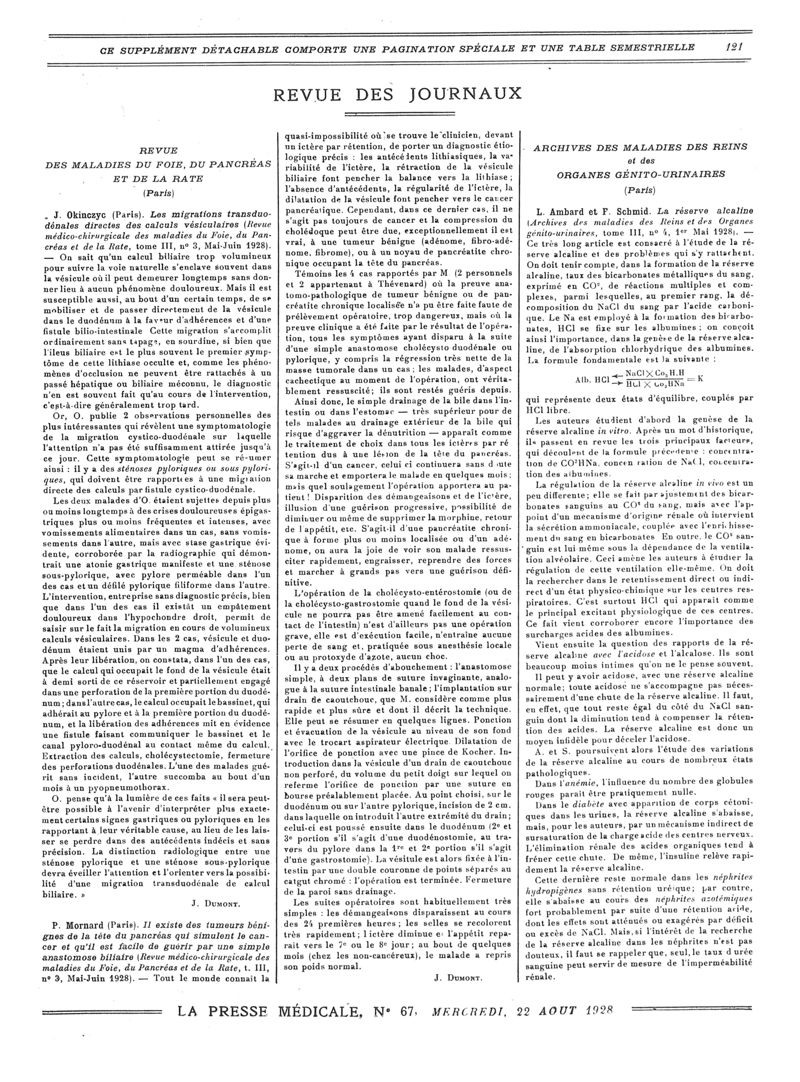 1928, Revue des journaux. -