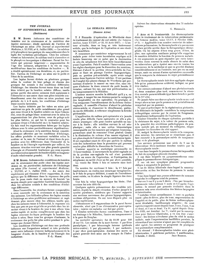 1928, Revue des journaux. -