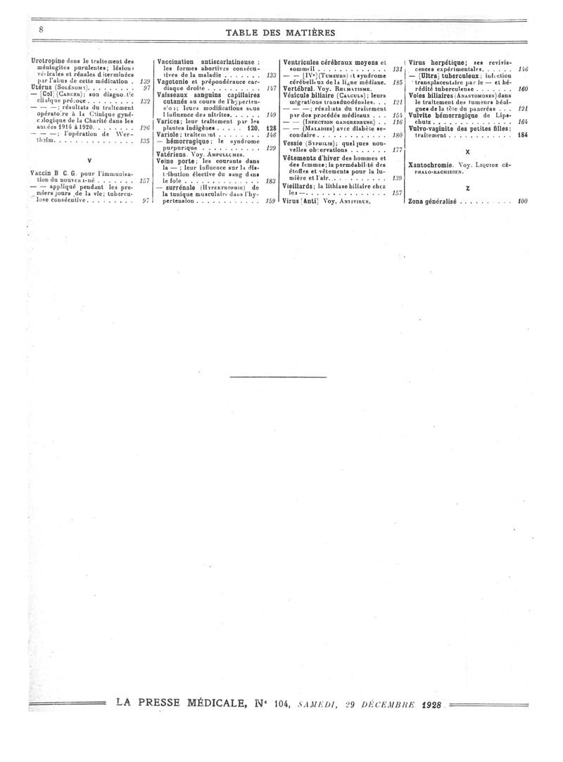 1928, Volume de tables. -