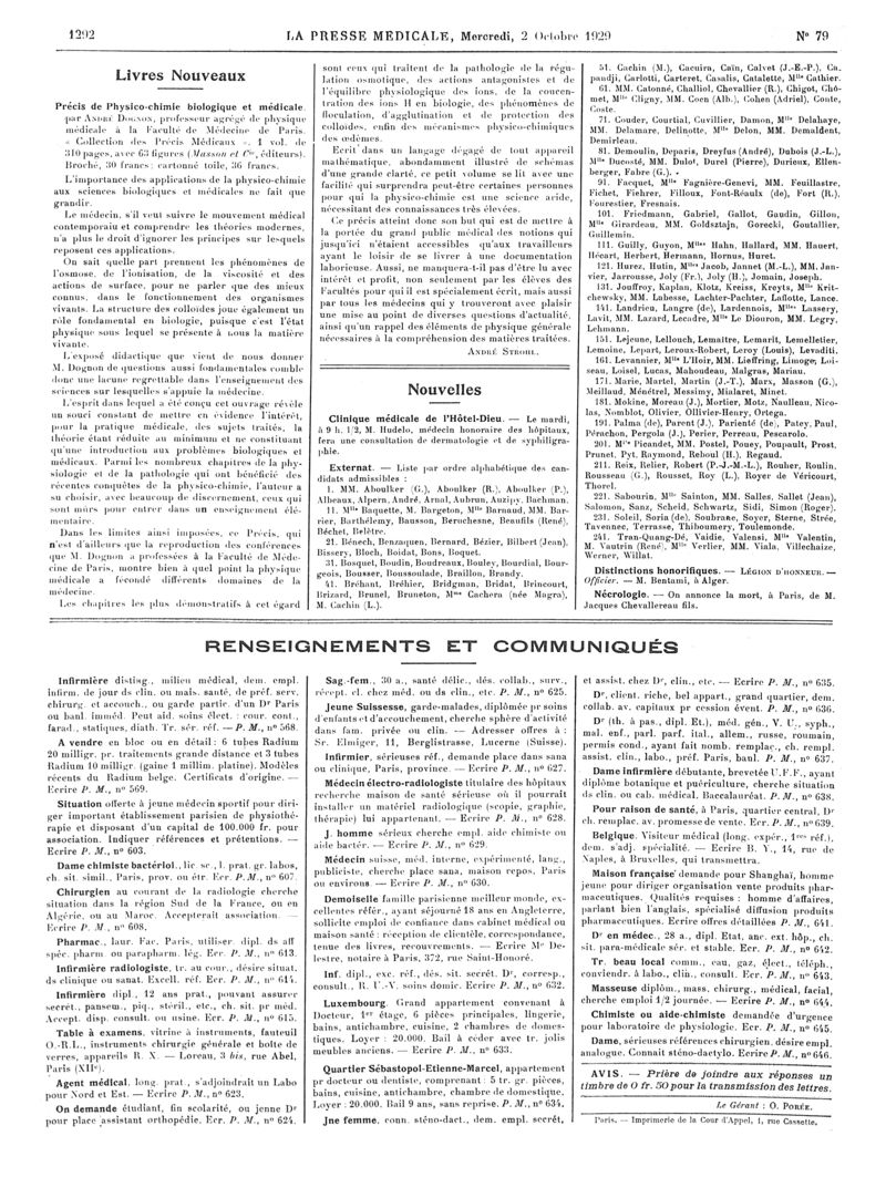 1929, Articles originaux. -