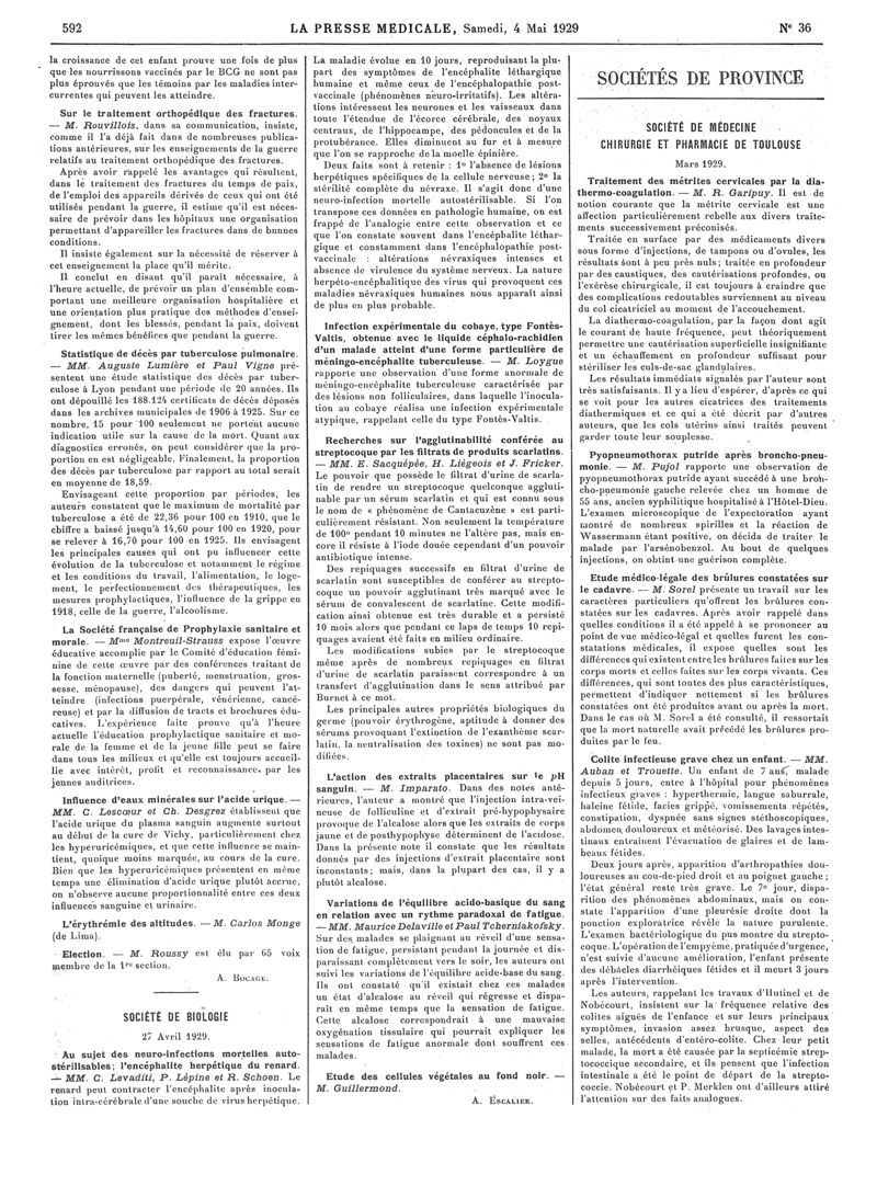 1929, Articles originaux. -