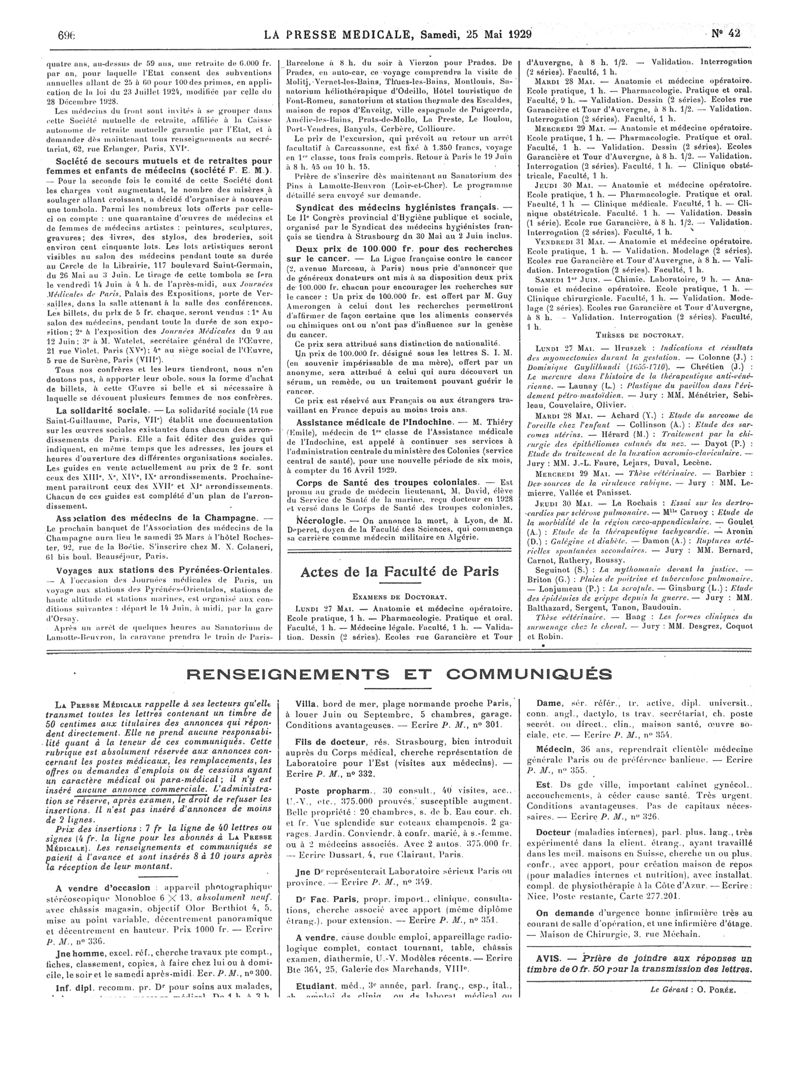 1929, Articles originaux. -