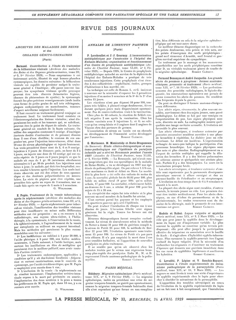 1929, Revue des journaux. -