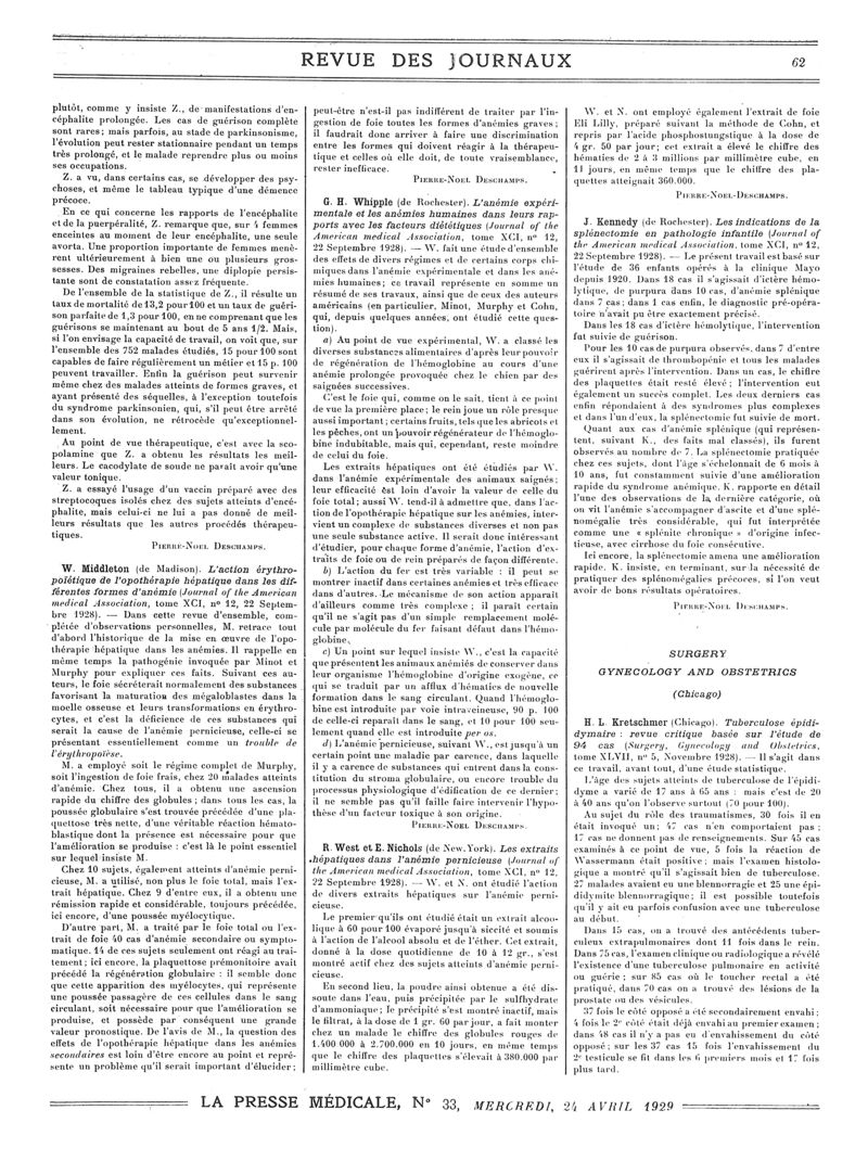 1929, Revue des journaux. -