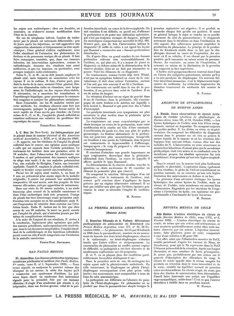 1929, Revue des journaux. -