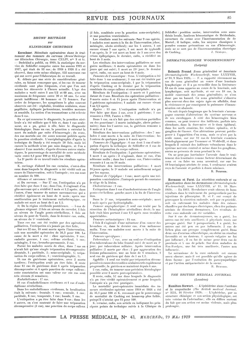 1929, Revue des journaux. -