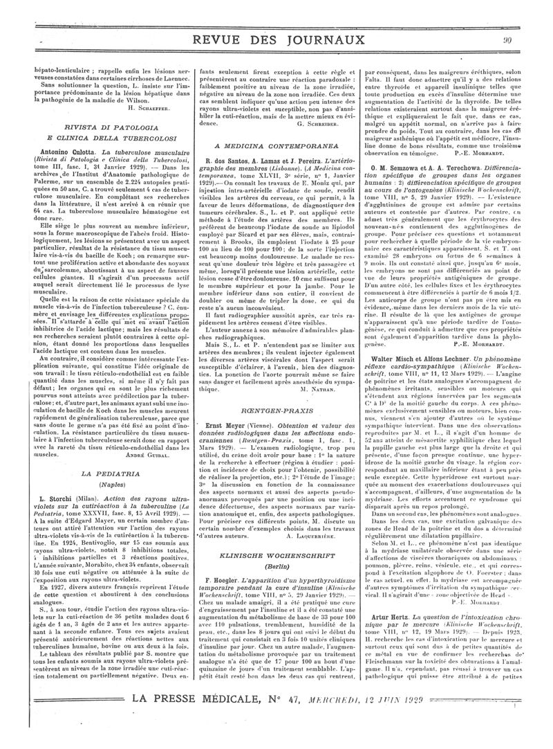 1929, Revue des journaux. -
